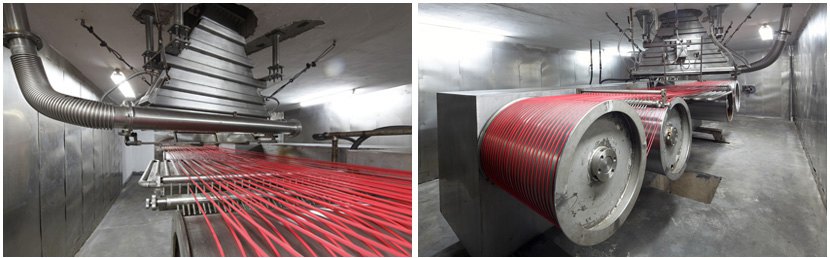 南洋電纜有限公司具有兩條國(guó)際領(lǐng)先水平AB型高頻高壓電子加速器,用電子加速器輻照電線電纜是輻照加工的重要領(lǐng)域,它集結(jié)電子技術(shù)、高能核物理技術(shù)、真空技術(shù)、計(jì)算機(jī)技術(shù)、輻照化學(xué)技術(shù)和電線電纜制造技術(shù)于一體,是當(dāng)今高新技術(shù)的榜樣。由電子加速器產(chǎn)生的高能電子束,作用在聚合物內(nèi)部,使聚合物的分子結(jié)構(gòu)產(chǎn)生顯著的改變,由原本的線性變成不溶不熔的三維網(wǎng)狀結(jié)構(gòu),從而使材料具有特別的耐熱性、耐化學(xué)性、耐輻照性、高阻燃性、高強(qiáng)度性。